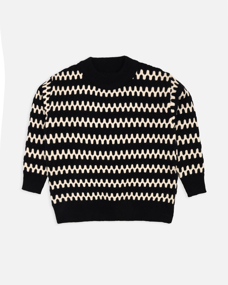 Boys Black Striper Sweater