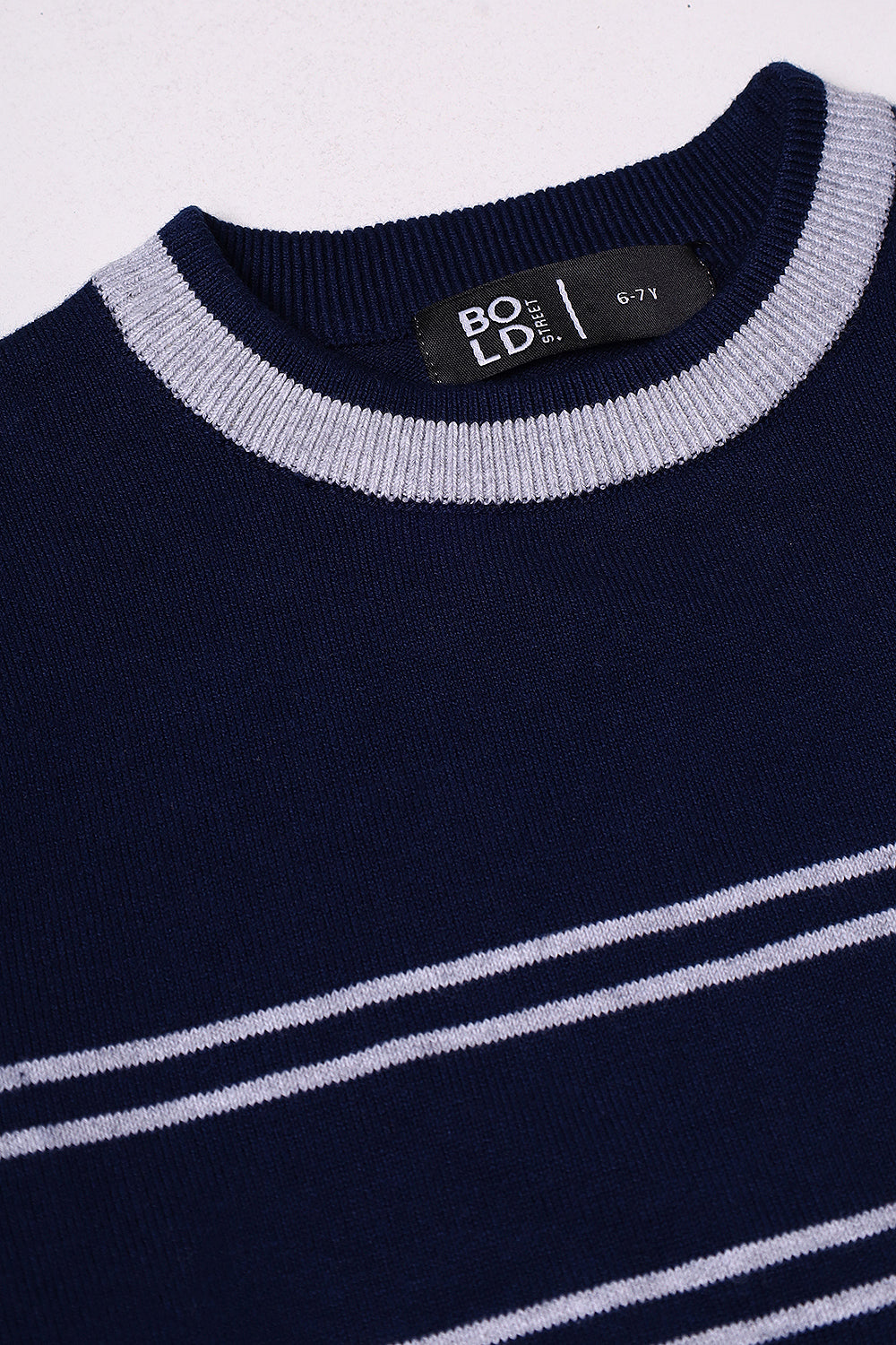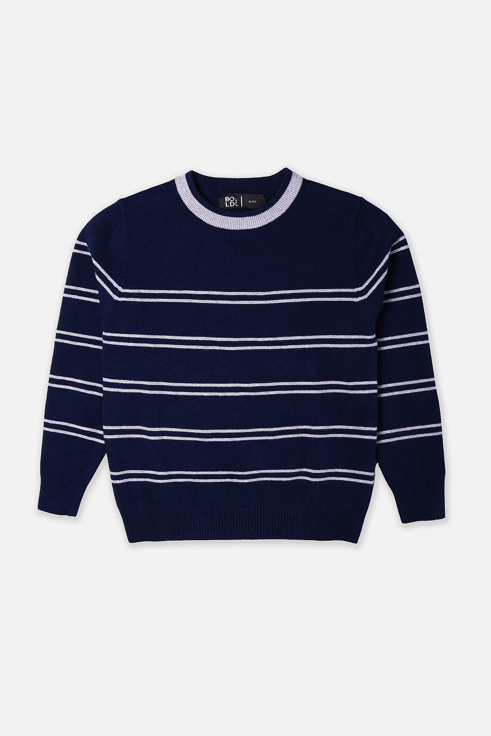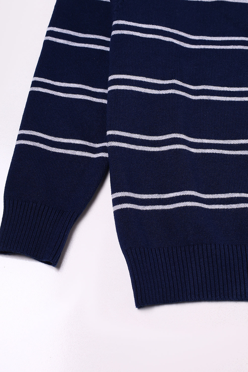 Boys Navy Grey Striper Sweater