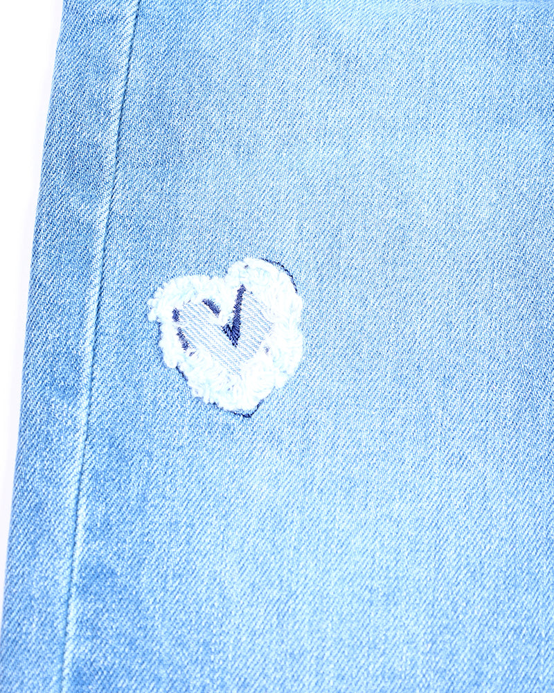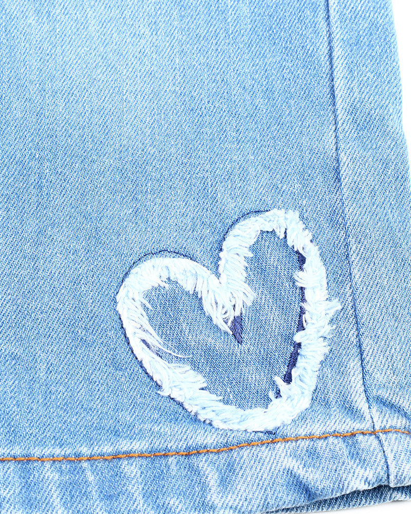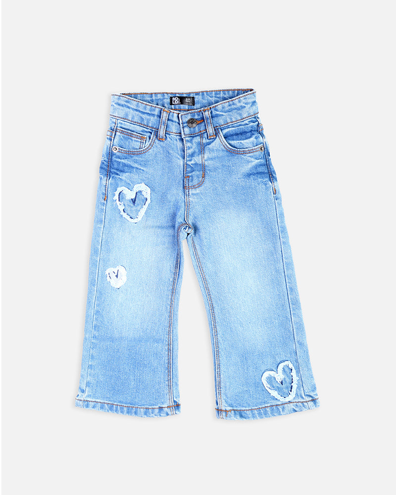 Girl Light Blue Denim Heart Pach Bell Bottam Ston Wash