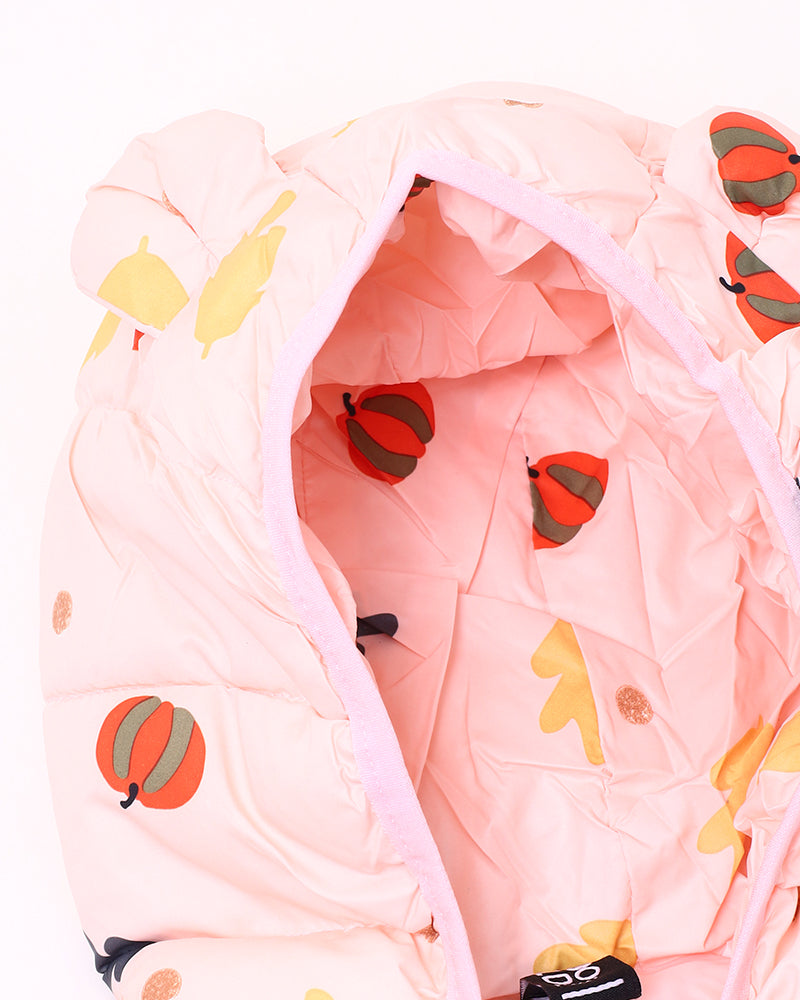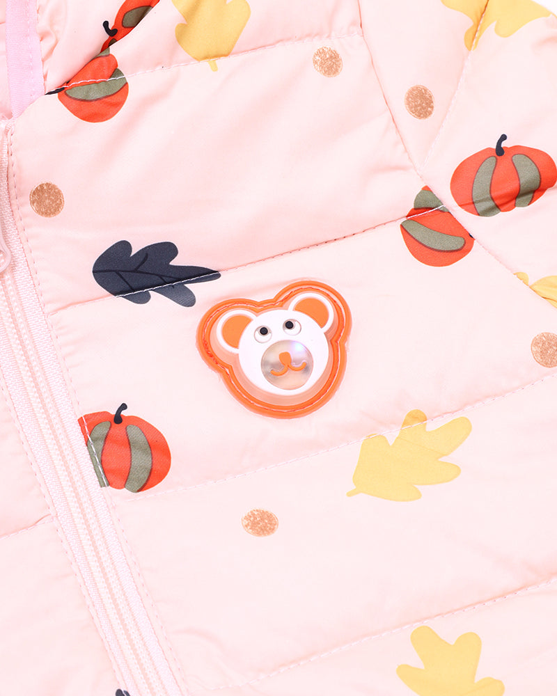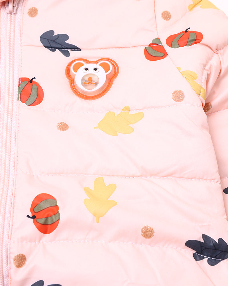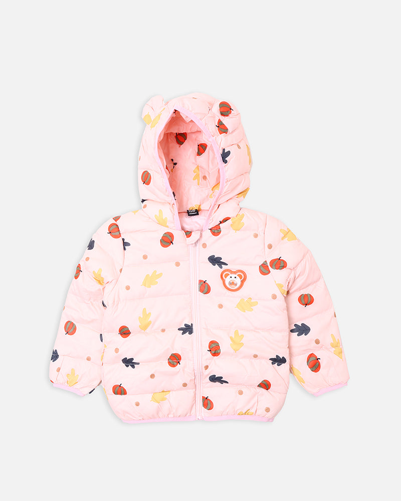 Girls Peach Printed Puffer Jacket