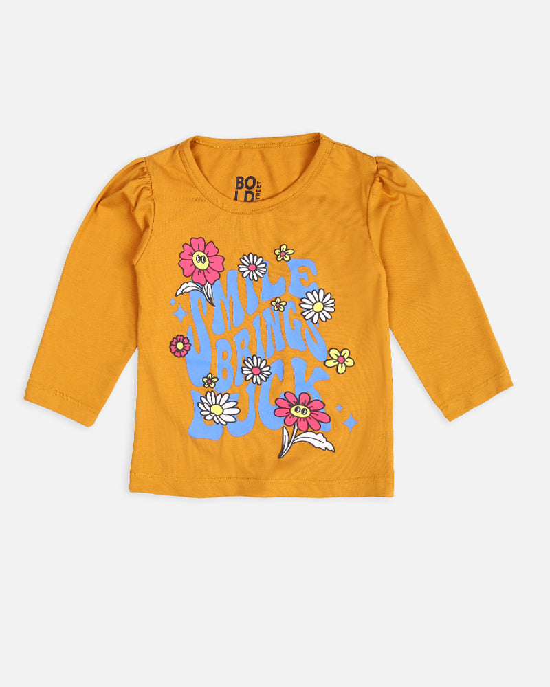 Girls Smile Brings Luck Printe Full Sleeve T-Shirt