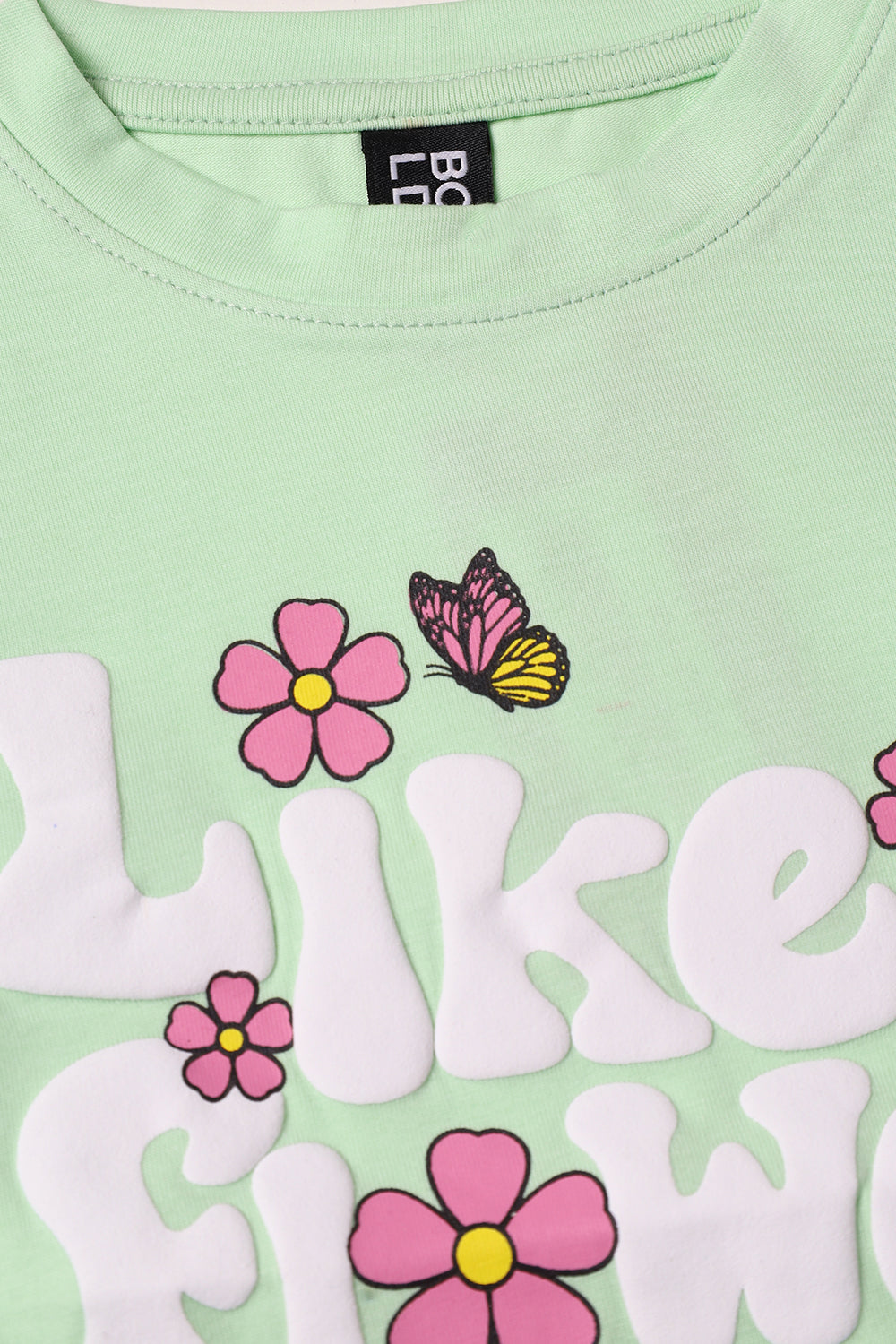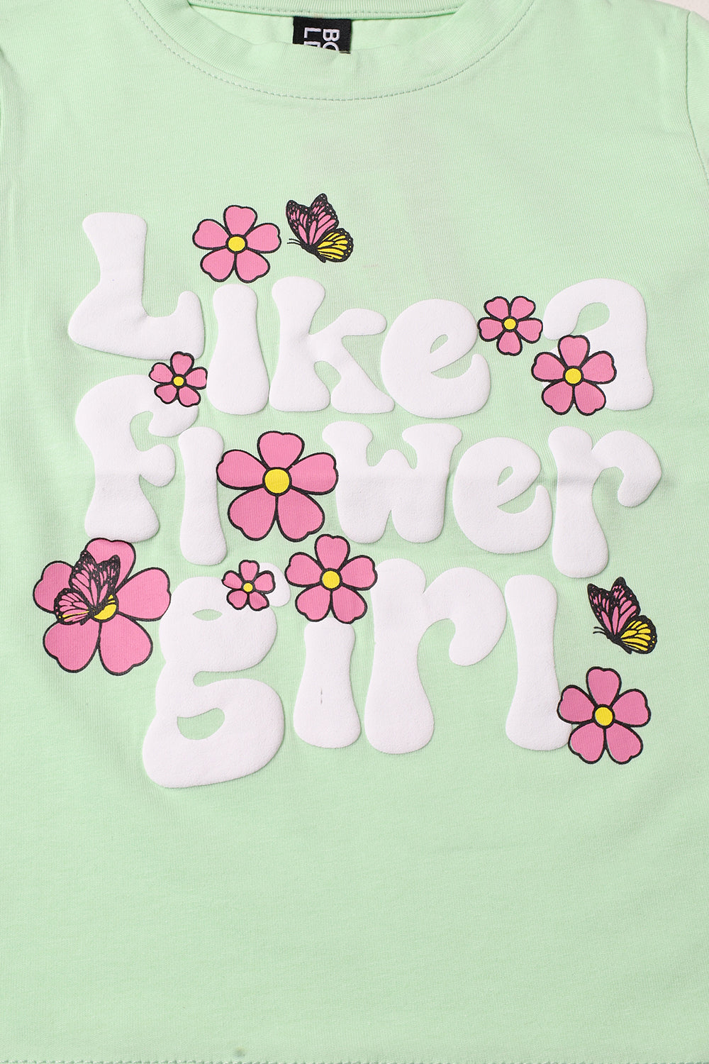 Girls Light Green Like A Flower Printed Full Sleeve T-Shirt