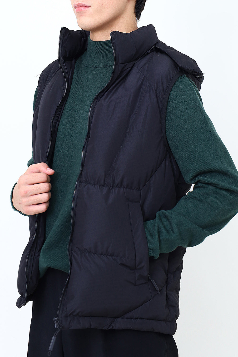 Men Black Sleeve Less Jacket