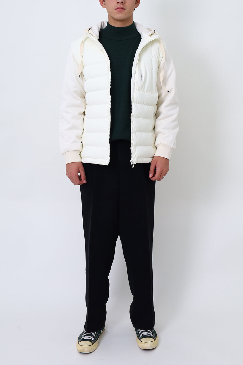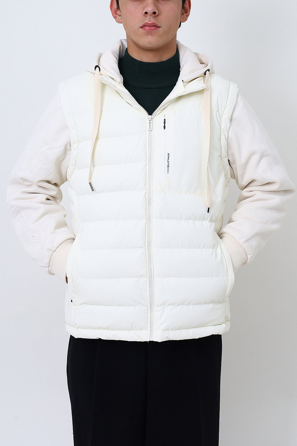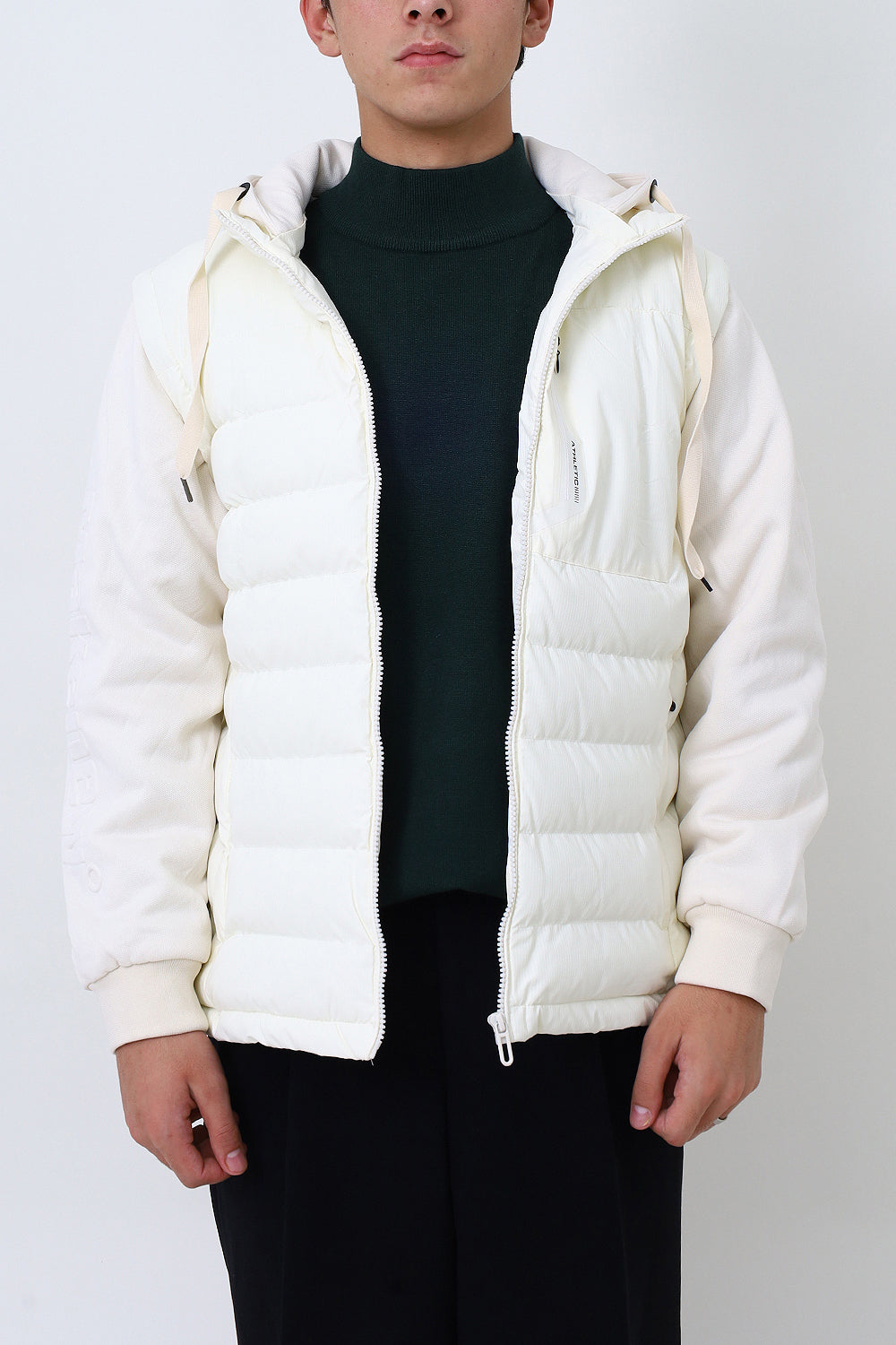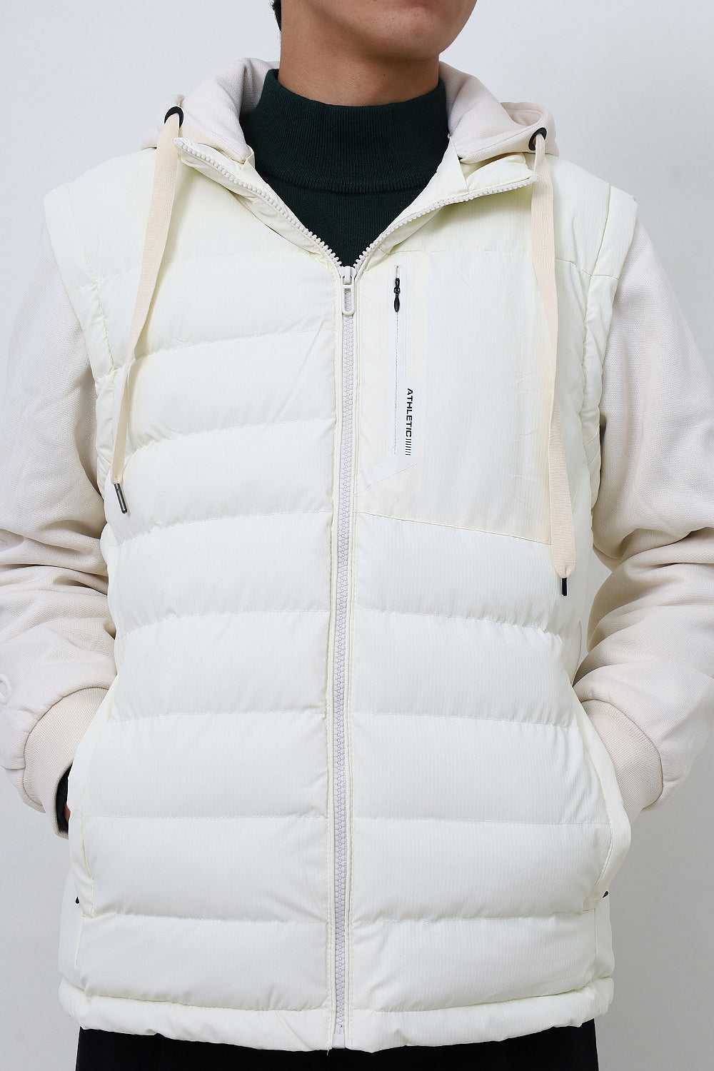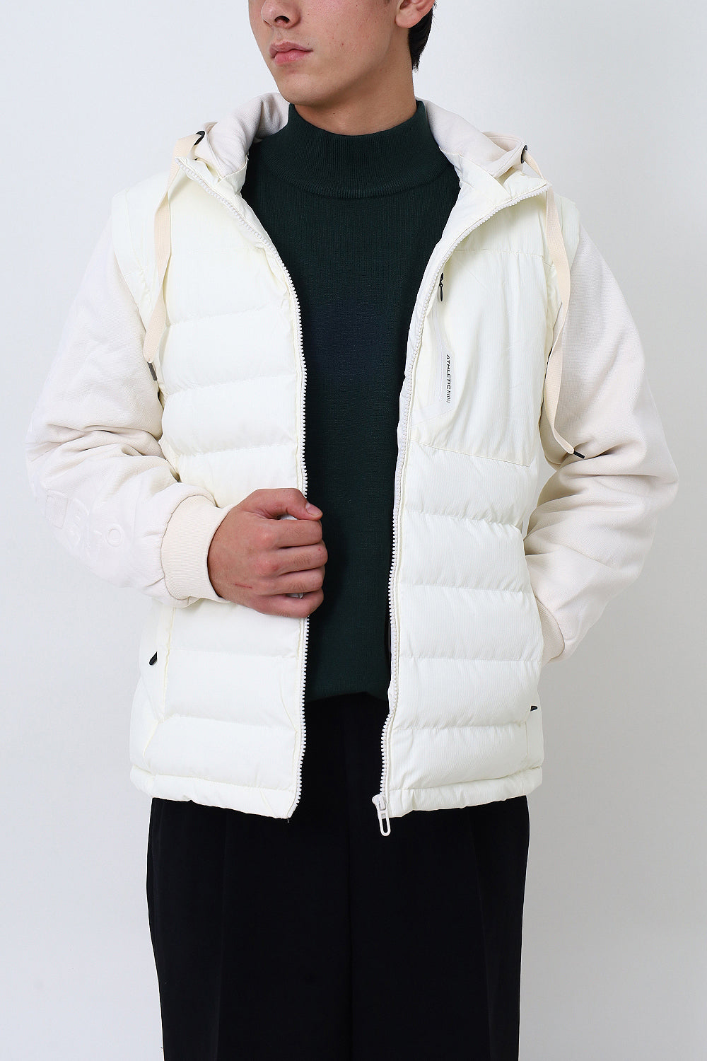 Men White Remove Able Sleeve Puffer Jacket