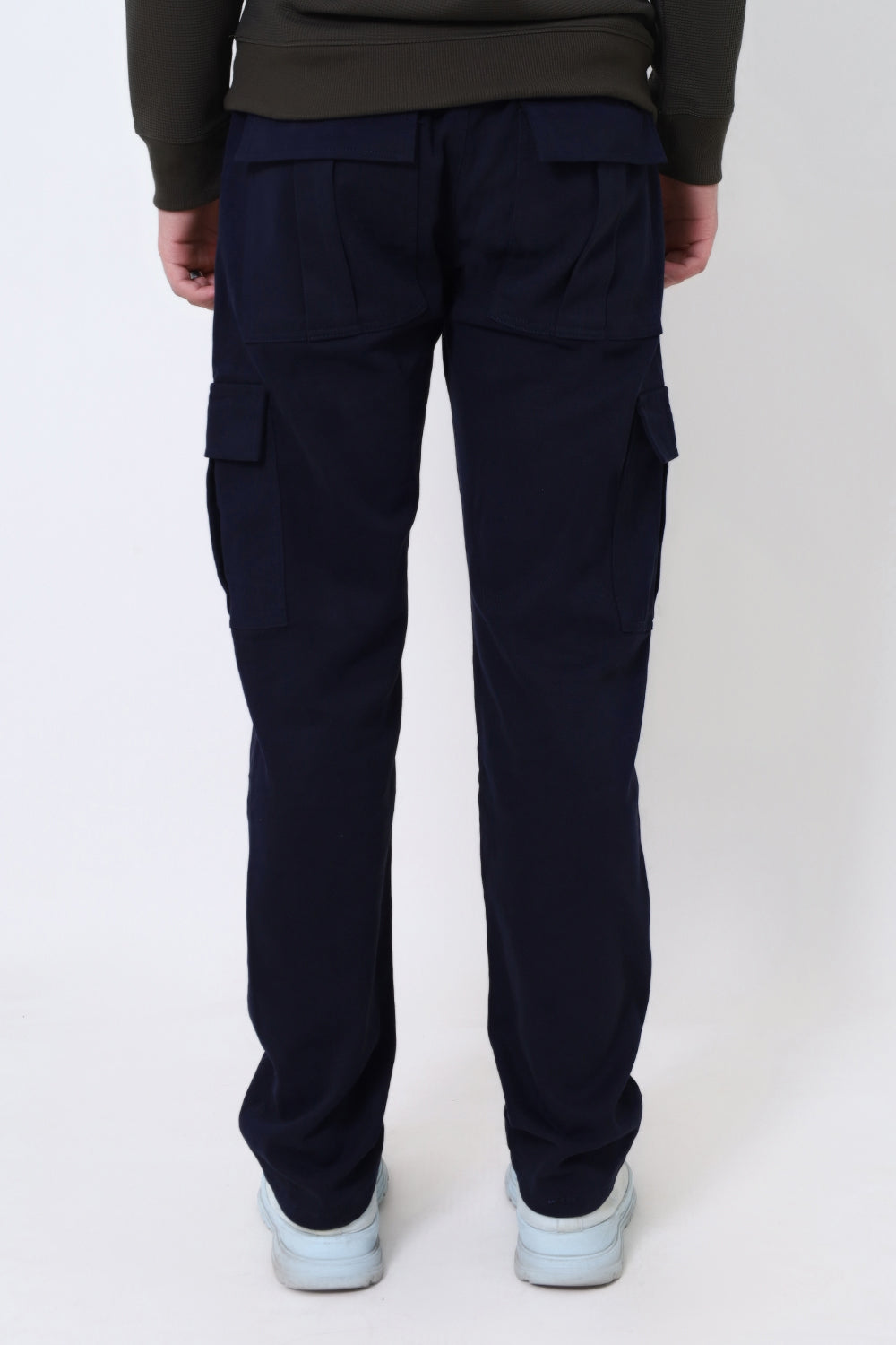 Stay comfortable and stylish with these Men’s Navy Cotton Cargo Trousers. Crafted from breathable cotton, they offer durability and ease of movement, making them ideal for everyday wear. Multiple cargo pockets provide practical storage options, perfect for keeping essentials close at hand. The navy color adds versatility, easily pairing with casual or smart-casual outfits. Designed for both functionality and style, these cargo trousers are a reliable choice for a modern wardrobe.