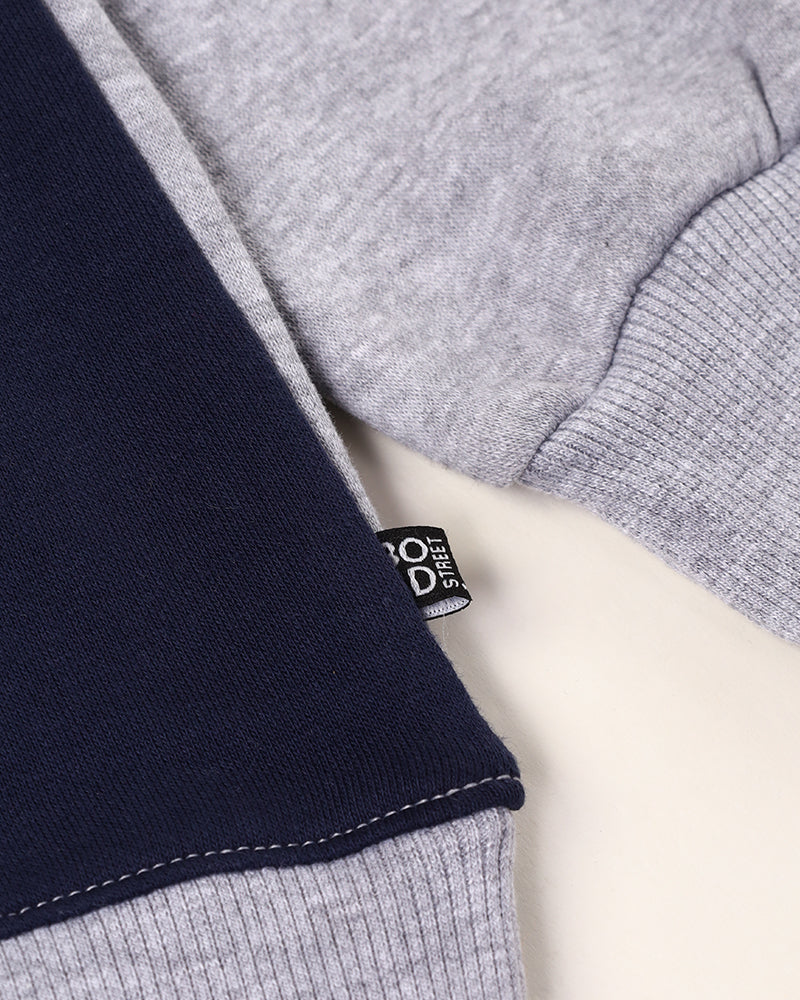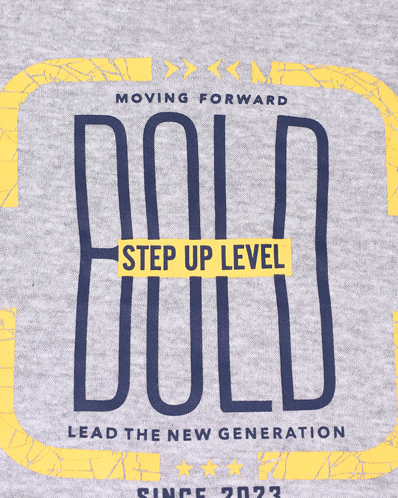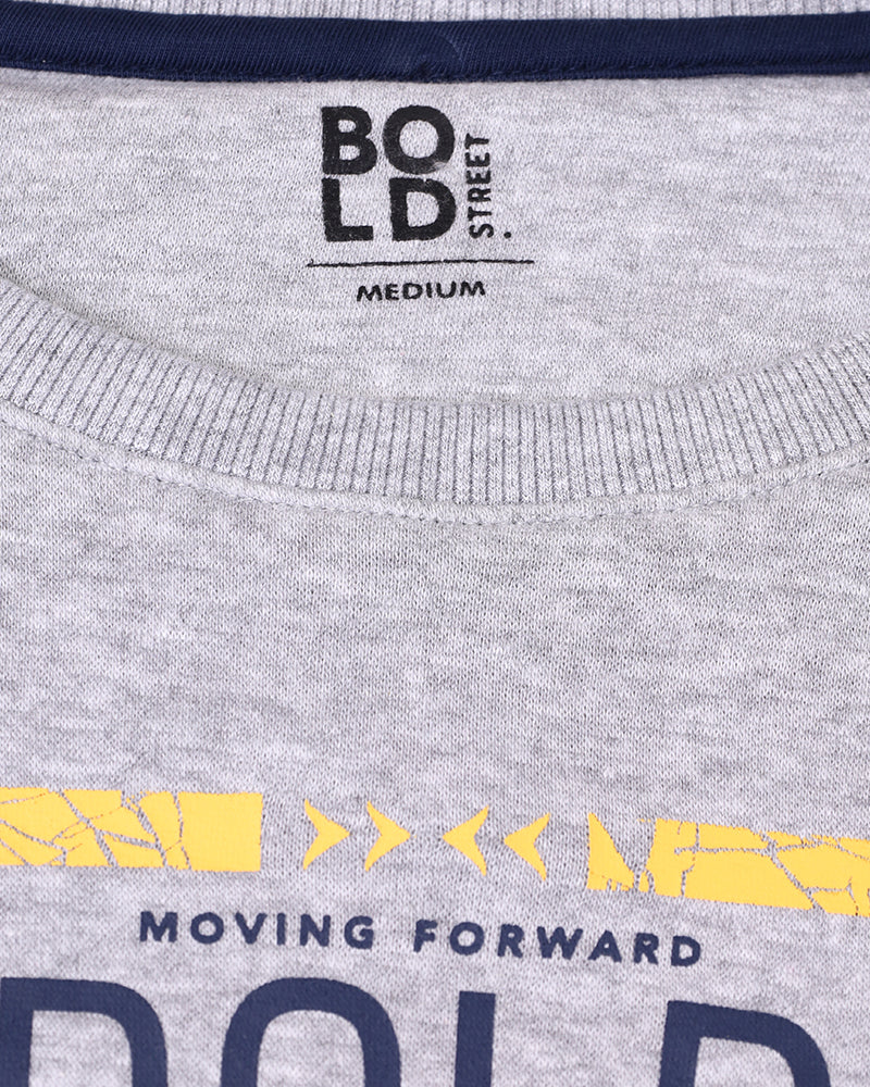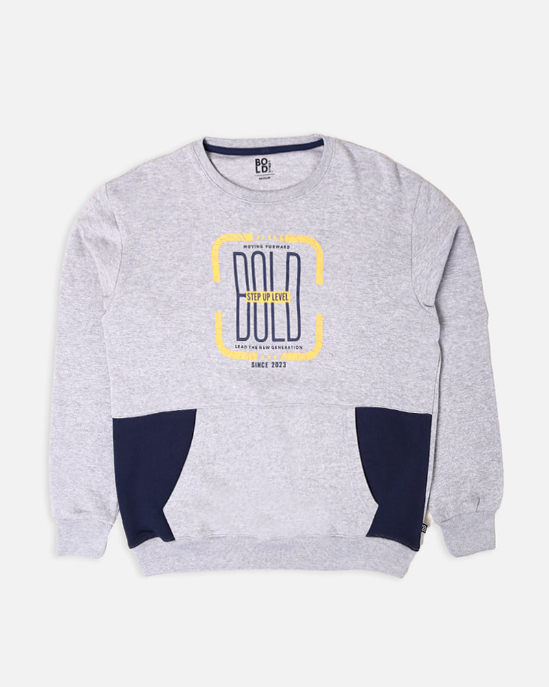 Mens Bold Printed Grey Sweat Shirt With Front Panel Pocket
