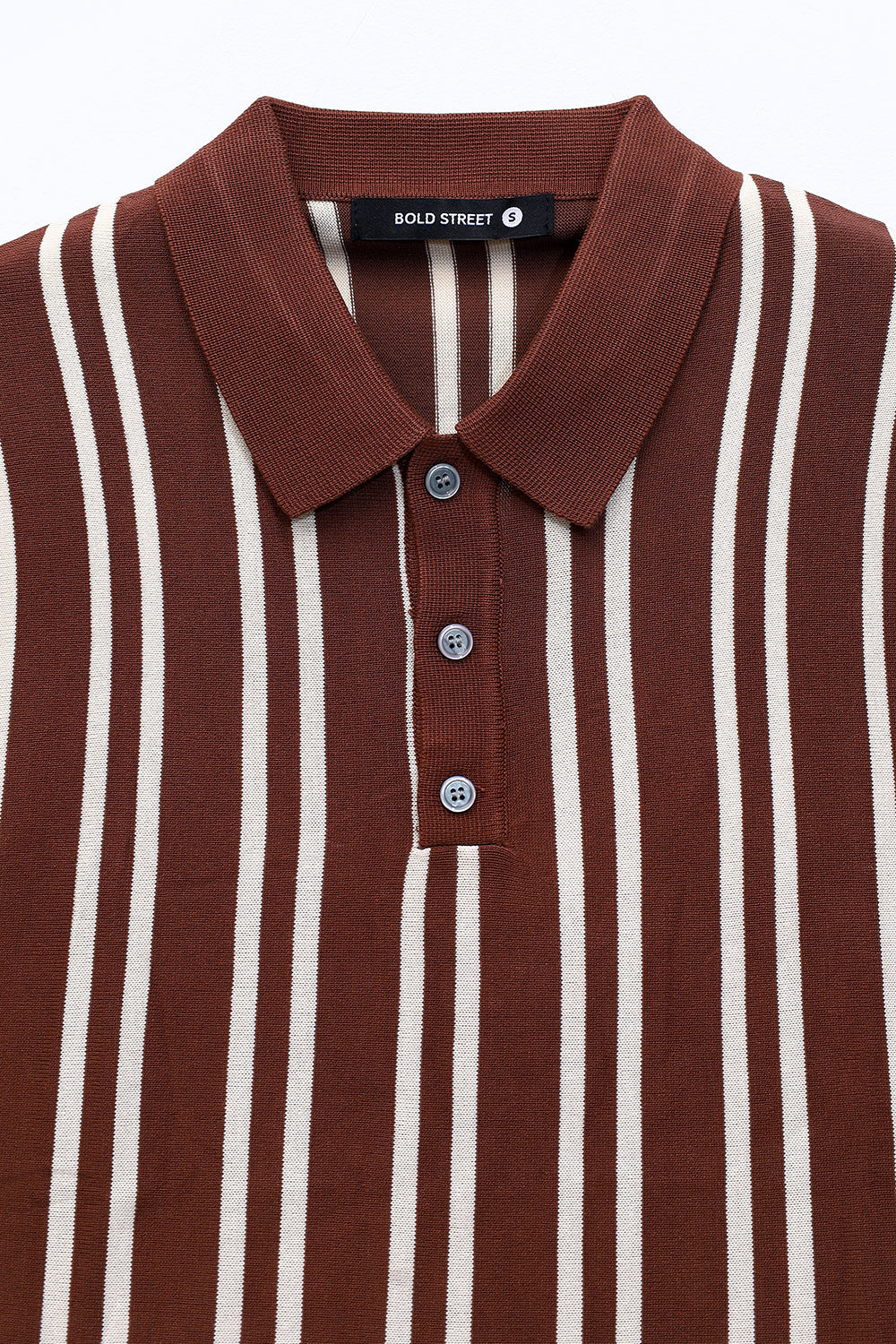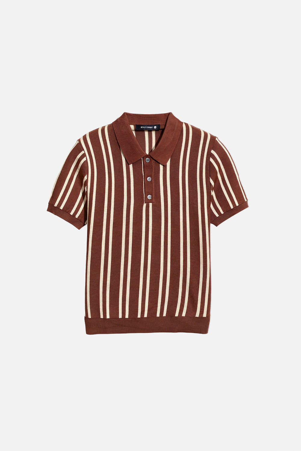 The BoldStreet Brown Striped Knitted Polo Shirt is a premium casual essential for men. This brown stripe polo features fine-knit construction and a classic polo collar — perfect for smart-casual or weekend dressing. Shop men's knitted polo shirts online in Pakistan — quality polo shirts by BoldStreet.