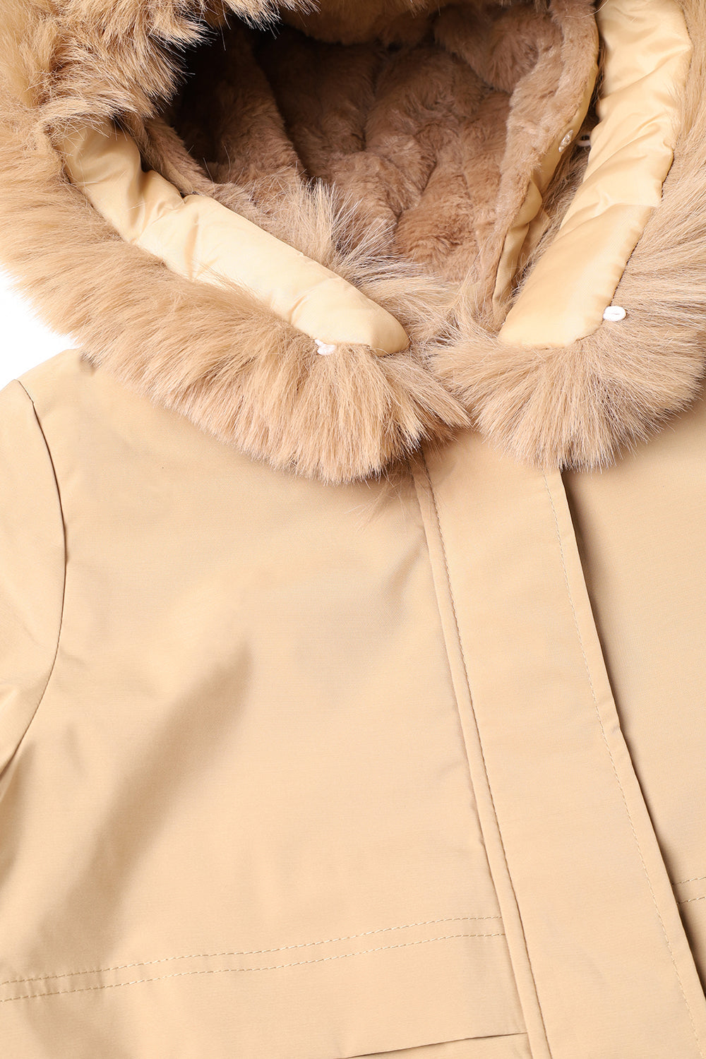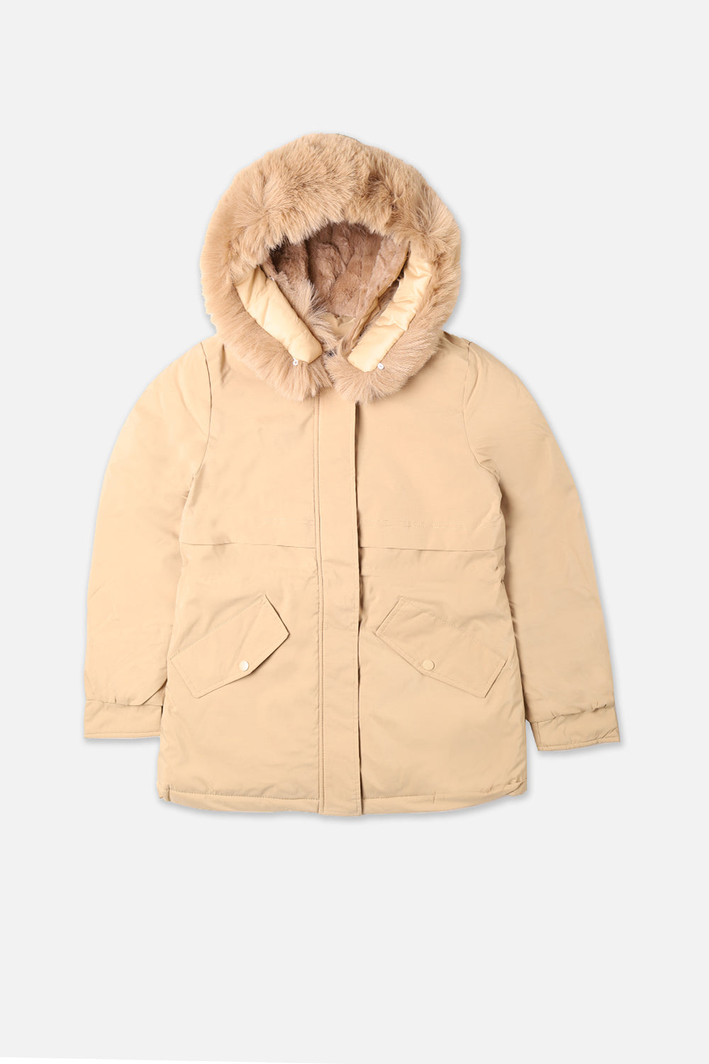 Women Camel Puffer Jacket With Hood
