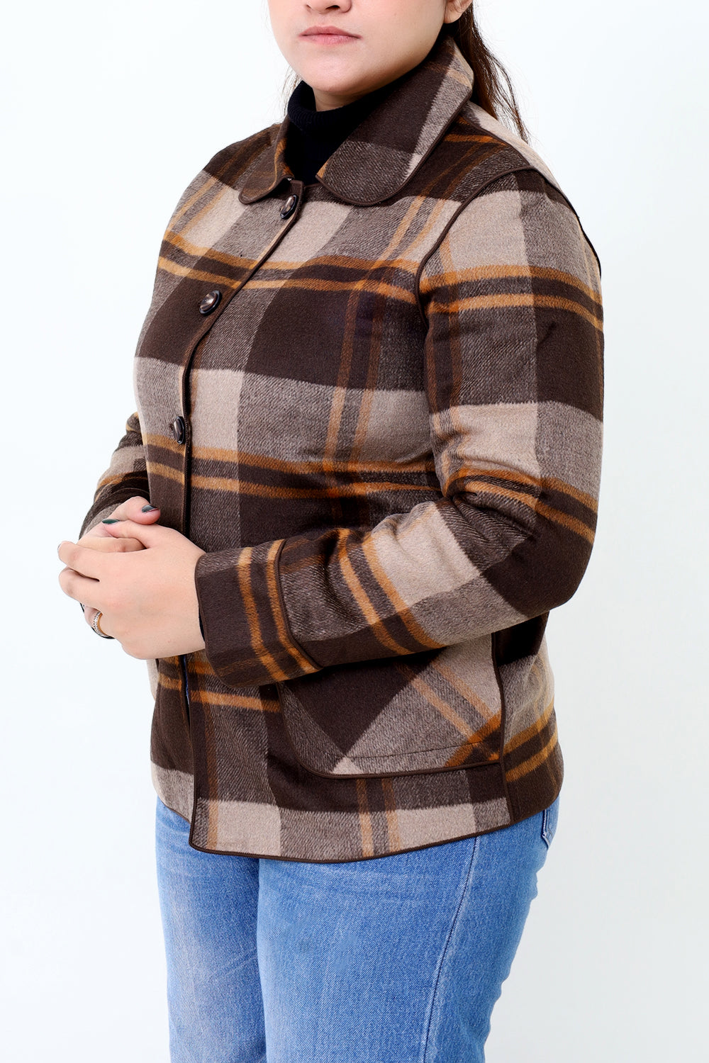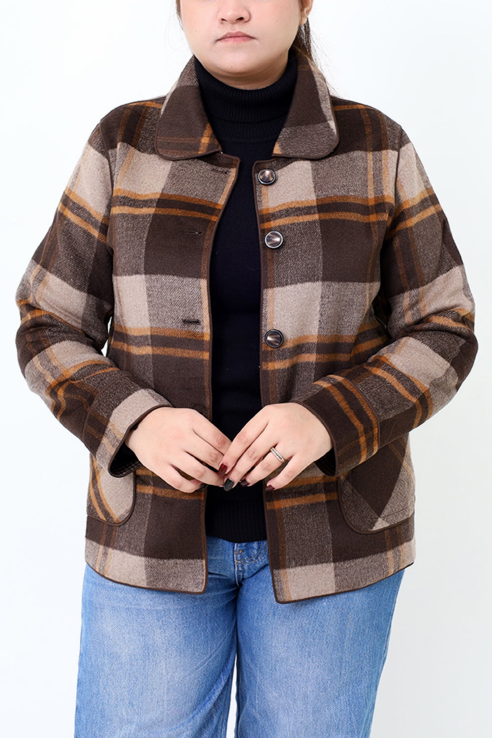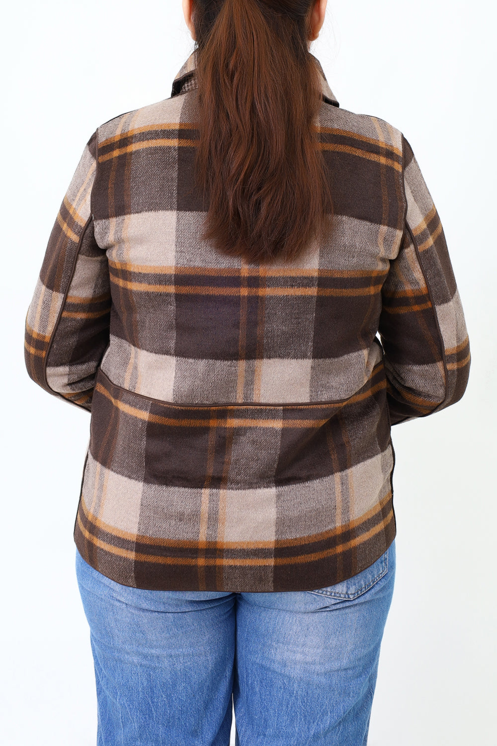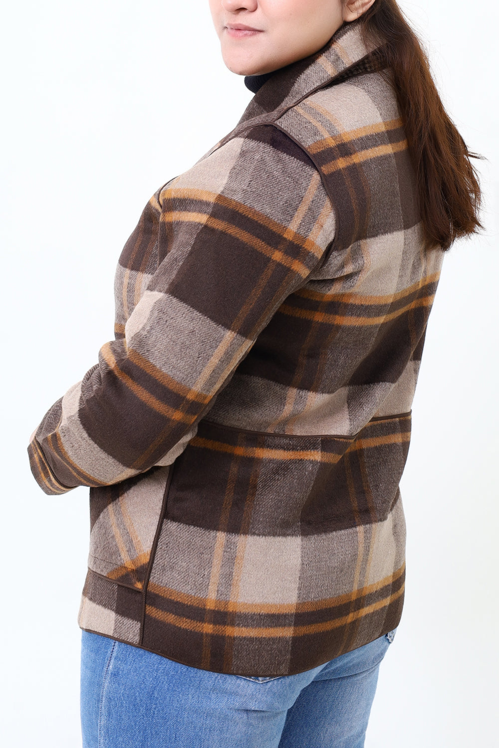 Women Brown Check Double Side Casual Coat