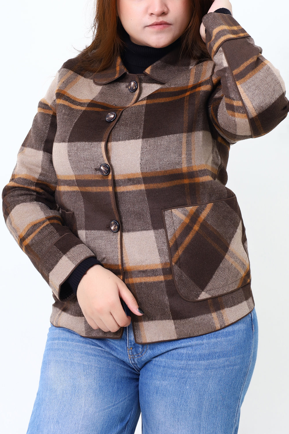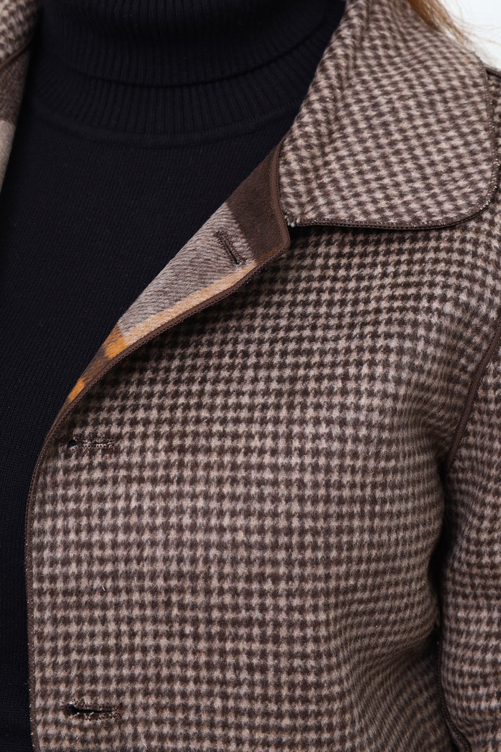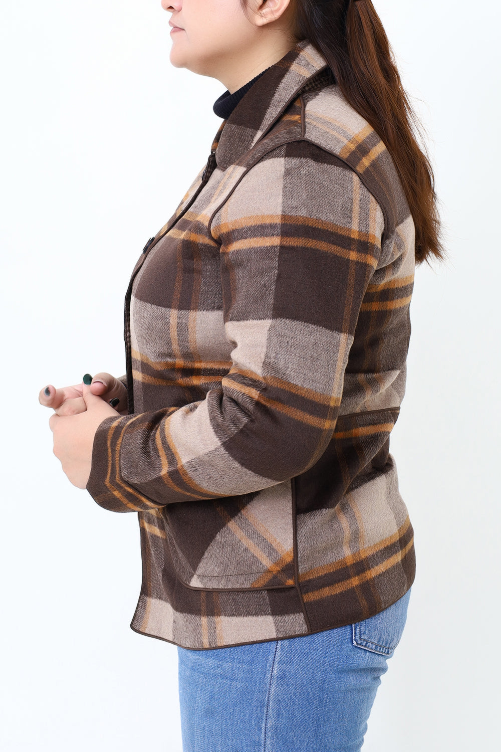 Women Brown Check Double Side Casual Coat