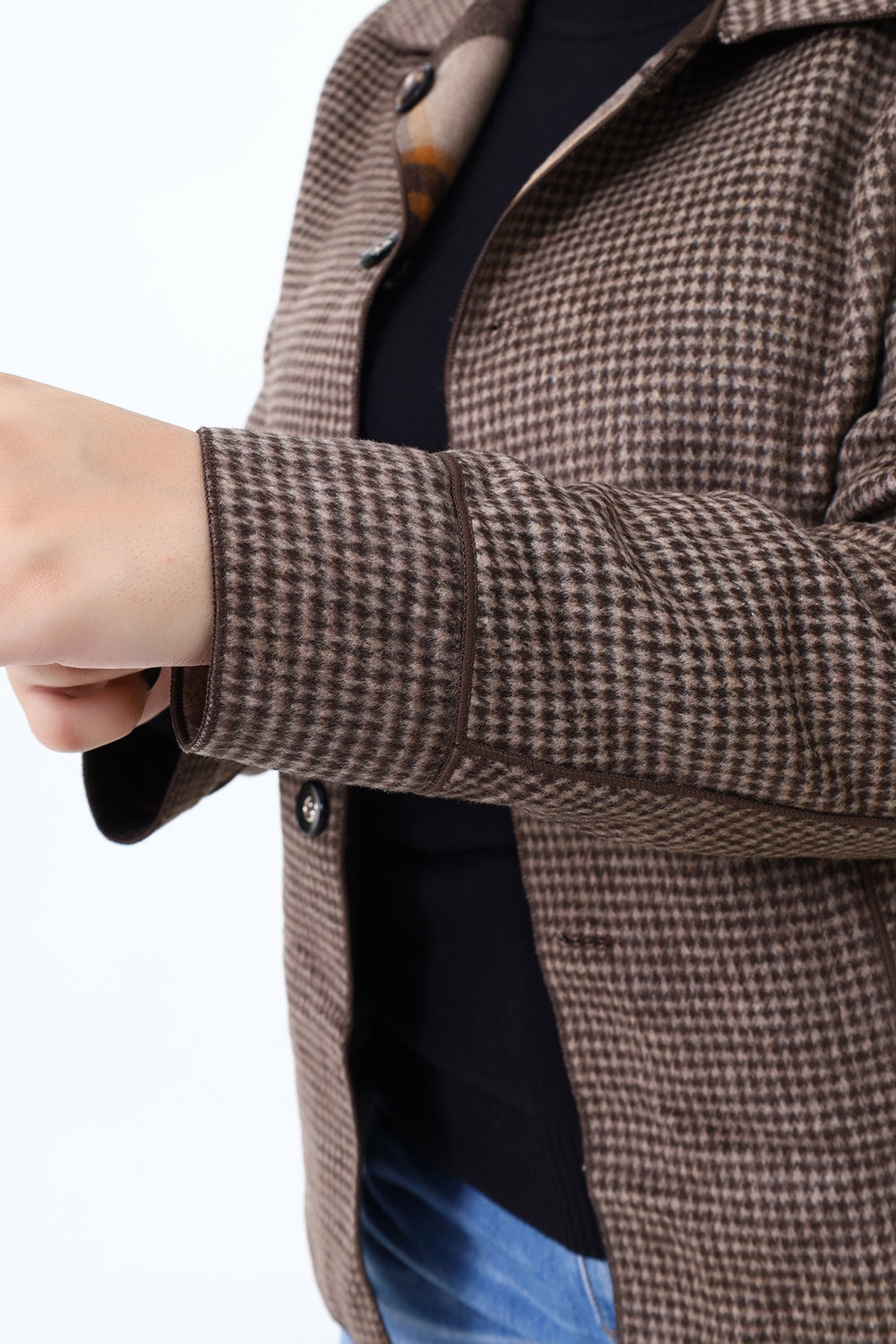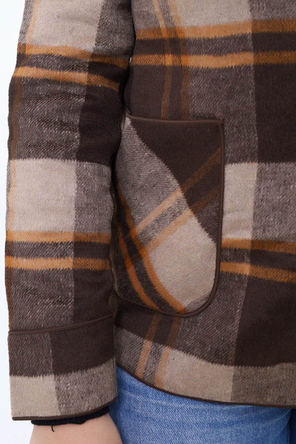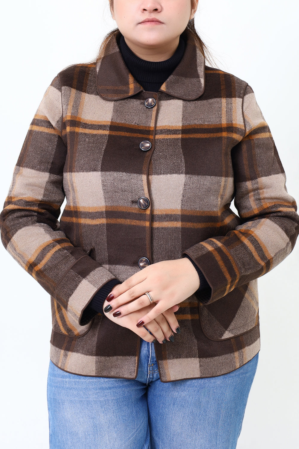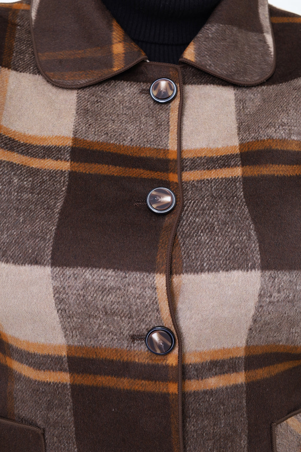 Women Brown Check Double Side Casual Coat
